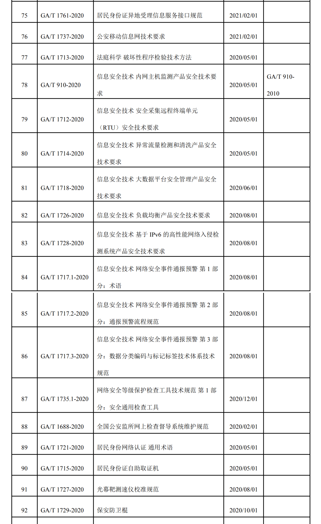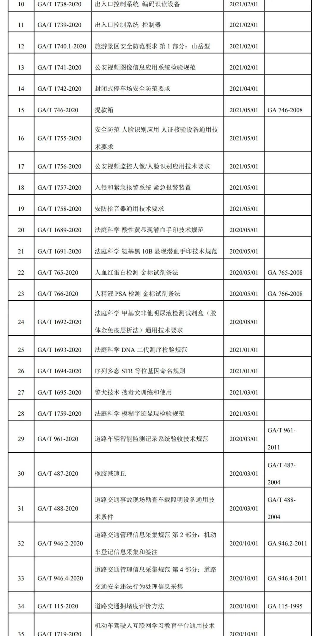 公安部发布关于公共安全行业标准的公告(2020年度)